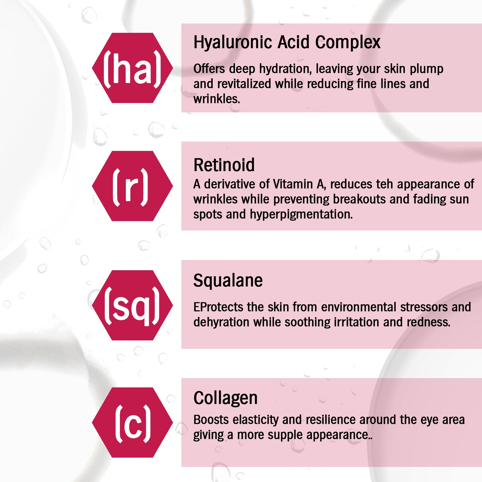 • Retinol: Promotes cell turnover and collagen production, reducing fine lines and wrinkles for smoother skin.